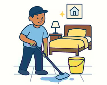 → Pour les logements Airbnb : nettoyage entre chaque réservation, avec linge propre fourni, lit fait, et remise en état rapide pour accueillir les prochains voyageurs.